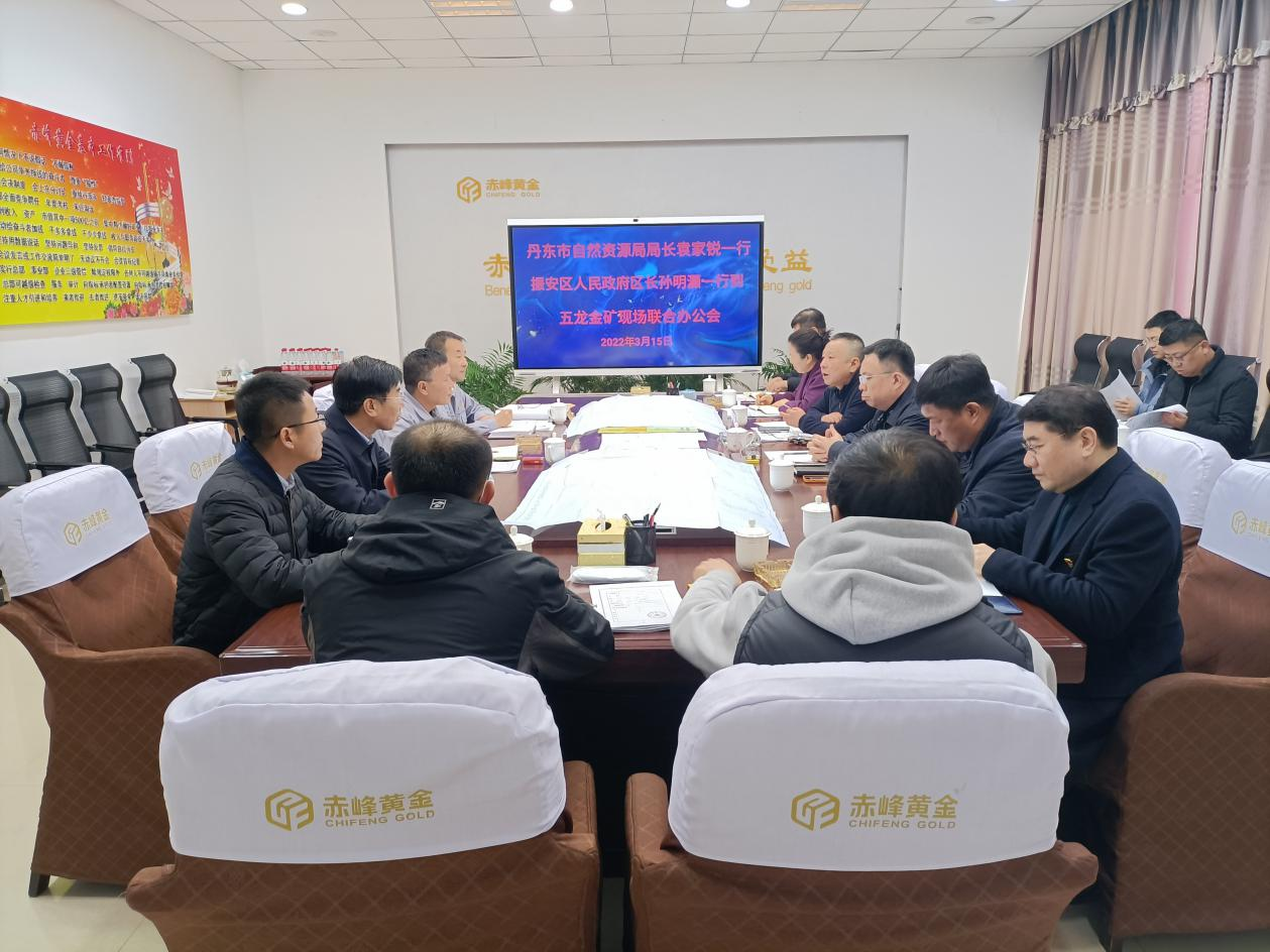 3月15日,丹東市自然資源局局長(zhǎng)袁家銳、副局長(zhǎng)王會(huì),會(huì)同振安區(qū)人民政府區(qū)長(zhǎng)孫明灝帶領(lǐng)相關(guān)科室人員一行16人到五龍礦業(yè)召開現(xiàn)場(chǎng)辦公會(huì)。五龍礦業(yè)總經(jīng)理劉金、總工程師邱海成參加了會(huì)議。